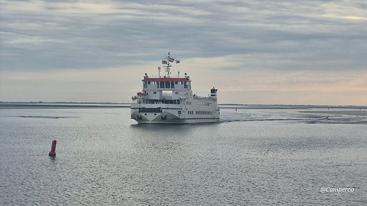 Zaterdag 30 augustus bezoeken we Ameland. We hebben tickets voor de overtocht van 9.45 uur, Vanaf de camperplaats is het maar een paar kilometer rijden naar de pier. We zijn ruim op tijd. De doorvaart door dit deel van de Waddenzee lijkt nogal ingewikkeld. De boot vaart een alles behalve rechte koers naar de overkant maar een nogal kronkelige route door de vaargeulen. Maar goed bijna een uur later zijn we op Ameland.